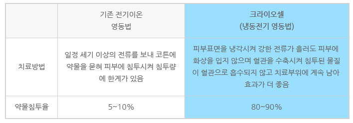 피부표면을 냉각시켜 강한 전류를 이용하여